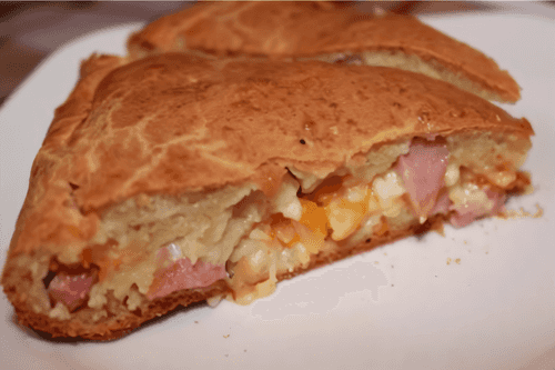 Cheese cake with ham is a delightful dish of Russian cuisine that combines the tenderness of cheese, the spiciness of ham, and the airy texture of layered dough. Its roots trace back to the traditions of making layered snack pies, but the special filling makes it unique. Each layer is soaked in a creamy-mustard sauce that enhances the flavor of the cheese and harmonizes with the delicate ham. The cake is hearty, slightly stretchy due to the cheese, with a crispy crust and appetizing aroma. It is perfect for festive tables or cozy home evenings, especially when paired with greens and vegetables. Baked to a golden color, this cake impresses not only with its taste but also its appearance, resembling a layered pie that makes guests eagerly await their first bite.