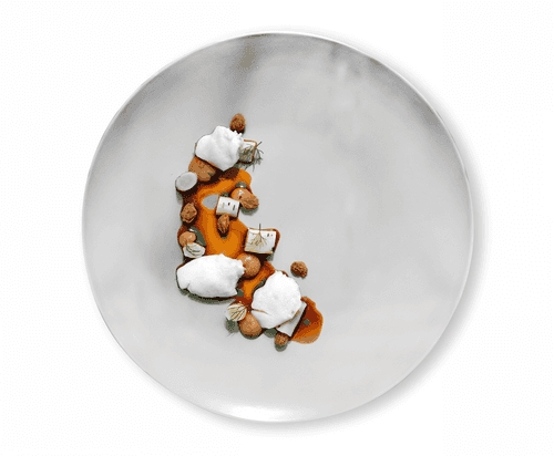 Cheeks with seaweed cream is a dish that reveals the gastronomic potential of marine cuisine. It combines the tenderness of fish cheeks, carefully prepared in a brine and fried in oil, with the rich creamy texture of seaweed. Fucus, caramelized with shallots and cauliflower, adds subtle sweet notes to the cream that harmoniously complement the fish broth. Serving with pickled gooseberries and goat beard compote adds an unexpected acidity and depth of flavor. Dill oil completes the composition with fresh herbal tones. This signature recipe reinterprets traditional marine ingredients, creating an exquisite and balanced dish that can be served as a centerpiece at a fine dining gathering.