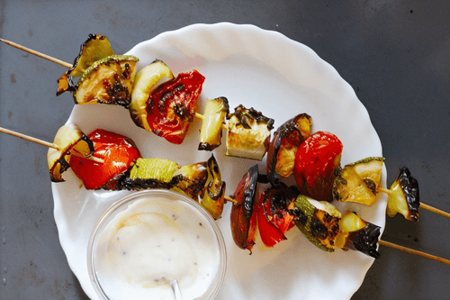 Vegetarian kebab with yogurt sauce