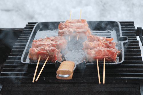 Wrap the shrimp and a tablespoon of cream cheese in a thin slice of bacon. Secure the resulting rolls with two skewers and place on the grill (or grill pan). Cook for 3-4 minutes on each side. Serve with tartar sauce.