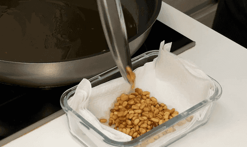 Use a slotted spoon to transfer the nuts to paper towels to remove excess fat.