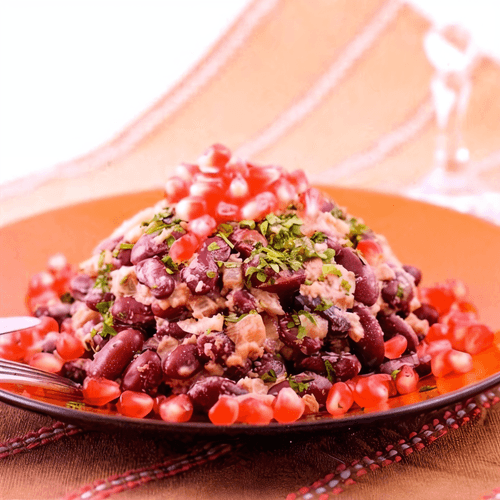 Beans with pomegranate and nuts