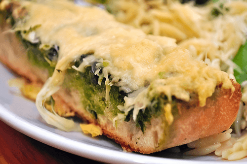 Place the bread back in the oven without wrapping, increase the temperature to 260 degrees. Bake until the cheese melts.