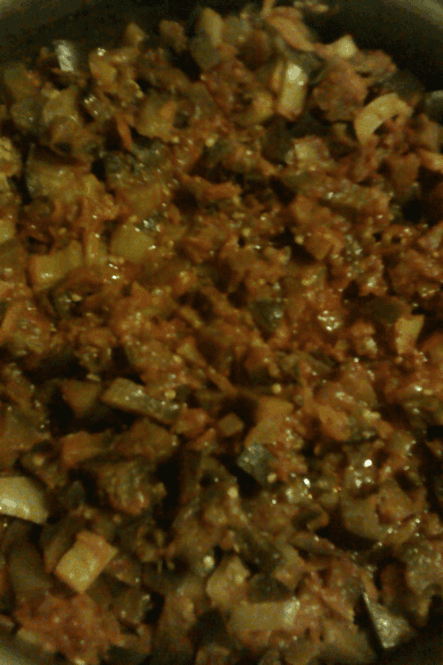 Cut the eggplants and peppers into cubes, grate the carrot on a coarse grater, and chop the onion finely.