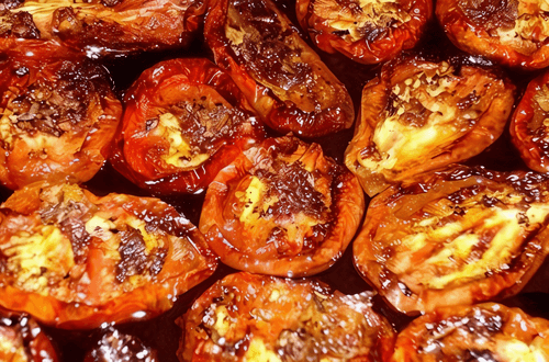 Place the tomatoes on a baking sheet lined with parchment paper.