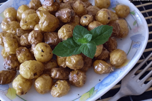 Small young potatoes need to be thoroughly washed, changing the water several times, and rinsed under running water. The potatoes should be roughly the same size to cook evenly and simultaneously. After washing, they should be laid on a towel and patted dry. There should be no moisture, otherwise the oil will splatter a lot. No need to salt either. Place a medium pot or a high-sided skillet with a thick bottom on the heat. Heat the oil until boiling. Add the potatoes in small batches so that they are all covered with oil. If you have a deep fryer, it's even easier. But I don't respect this appliance and try to use it very rarely.
