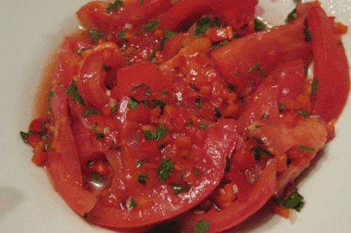 Pickled tomatoes with cilantro are a vibrant dish of Caucasian cuisine, filled with the aromas of fresh herbs and spicy spices. This appetizer perfectly complements meat and vegetable dishes, revealing the richness of the region's flavors. The sweetness of ripe tomatoes harmonizes with the piquant cilantro, garlic, and hot peppers, while the marinade based on oils and vinegar adds freshness and depth of flavor. Traditionally, such pickled vegetables are used at feasts where every detail enriches the flavor ensemble of the dish. This is not just a recipe – it's an opportunity to immerse oneself in the atmosphere of the Caucasus, with its hospitality and rich culinary traditions. The fragrant cilantro, tanginess of vinegar, and slight spiciness make these pickled tomatoes an ideal choice for lovers of bright and rich flavors.