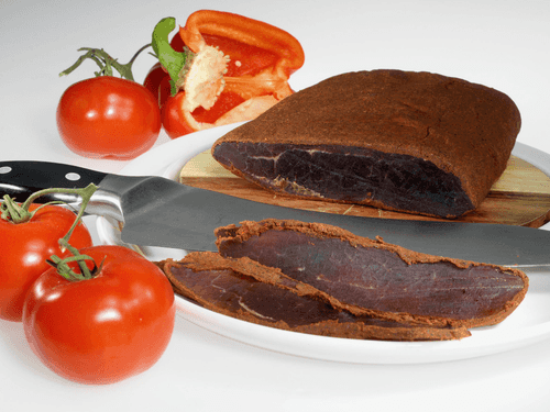 Carefully clean the piece of meat (inner part of the hind leg) from fat, membranes, and sinews. Puncture all over with a sharp knife to let excess blood drain and to allow the meat to salt better.