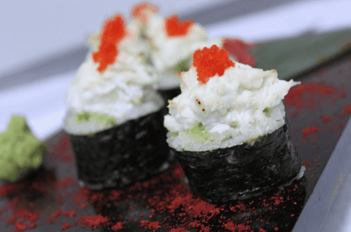 Baked roll with crab and avocado is a refined representative of Japanese cuisine, combining the tenderness of seafood, the creamy texture of cheese, and the spiciness of spices. The origins of the dish lie in the art of roll-making that has evolved over centuries, but baking gives this version a special depth of flavor. The moderately spicy wasabi highlights the sweet undertone of crab, while tobiko adds a crunchy texture and a slight saltiness. Avocado brings a creamy note, making each bite balanced and rich. This roll is perfect for a warm family dinner or festive gathering when you want to impress guests with a new take on a classic Japanese dish.