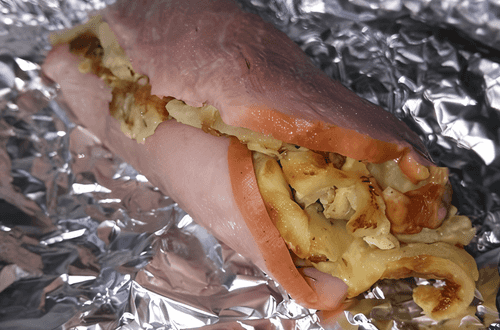 Wrap into a roll. Secure with a skewer.