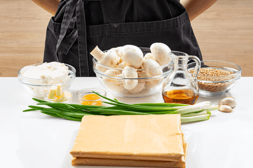 Pie with spelt and mushrooms is an exquisite combination of ancient grain and tender forest mushrooms, embodied in crispy puff pastry. Spelt, known since ancient times, adds a light nutty note and rich flavor to the filling, while mushrooms simmered in butter with Madeira reveal their depth. Creamy ricotta unites the ingredients, adding softness and harmony. This pie, inspired by European culinary traditions, is perfect for a cozy family dinner or a festive feast. It is served warm when the pastry is crispy and the filling aromatic or cold to unveil new flavor dimensions. A wonderful choice for connoisseurs of exquisite gastronomy and traditional baking.