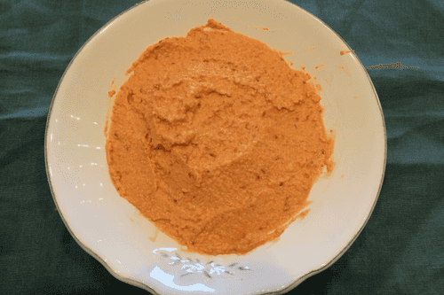 Hummus with roasted pepper is a vibrant Mediterranean dish that combines the tenderness of chickpeas and the rich aroma of roasted red pepper. Its roots trace back to ancient Arab and Jewish traditions, where hummus was considered a symbol of hospitality. The roasted pepper adds a light sweetness and smoky note, making the texture of the hummus even more velvety. It pairs excellently with warm lavash or crispy pitas and is perfect as an appetizer for aperitifs. Thanks to tahini and lemon juice, hummus acquires a subtle nutty flavor with a refreshing tanginess. This dish is not only nutritious but also healthy, rich in fiber and beneficial fats. Serve it with herbs and a drizzle of olive oil for full flavor enhancement.