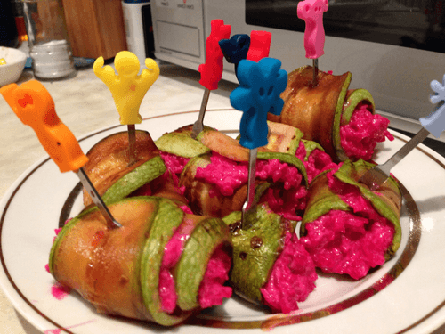 Zucchini rolls with beetroot filling