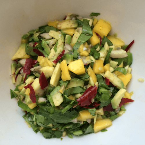 Mango salsa, avocado with sorrel with passion fruit dressing