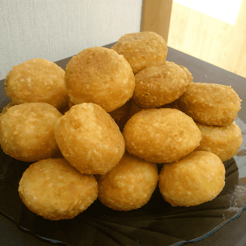 Then she rolled the balls and sent them to a pan with a lot of oil. She kept them until golden brown, and that was it.
