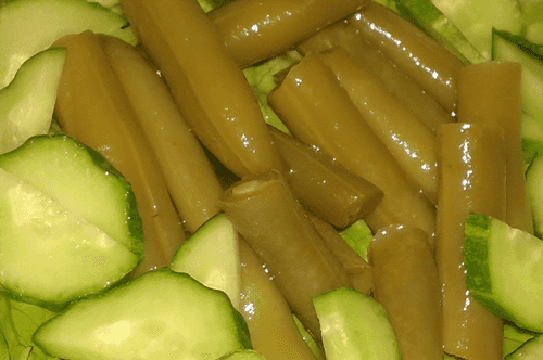 Quick pickled green beans are a simple and light snack that captivates with its freshness and spiciness. This recipe comes from American cuisine, where pickled vegetables are a popular accompaniment to meat and fish. The beans retain their crunchy texture, while the vinegar along with onions and spices gives them a rich flavor with a hint of heat. Perfect for summer picnics or family dinners, and thanks to the quick pickling, you can enjoy this appetizing dish in just two hours. Served cold, it refreshes and enhances the main dish's flavor. This treat is not only tasty but also healthy, as green beans are rich in vitamins and fiber, and pickling helps preserve their freshness and natural taste.