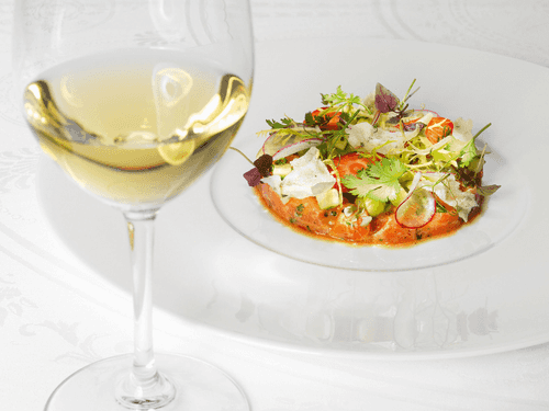 Salmon tartare in a spicy sauce with avocado and cilantro