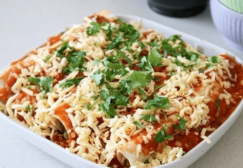 Chicken enchiladas are a vibrant and aromatic dish of Mexican cuisine, filled with the warmth of spices and rich flavor. Its roots go deep into Mexican gastronomy, where a sauce made from tomatoes, chili peppers, and garlic gives each serving a robust taste. The dish features tender chicken filling infused with fragrant spices wrapped in soft tortillas and baked under a layer of gooey cheddar until golden brown. Enchiladas are served with fresh cilantro that adds lightness and freshness. This is not just food but a true culinary journey where each bite reveals the richness of Mexican traditions. The dish is perfect for family dinners or friendly gatherings as it brings people together with its rich texture and warming flavor.