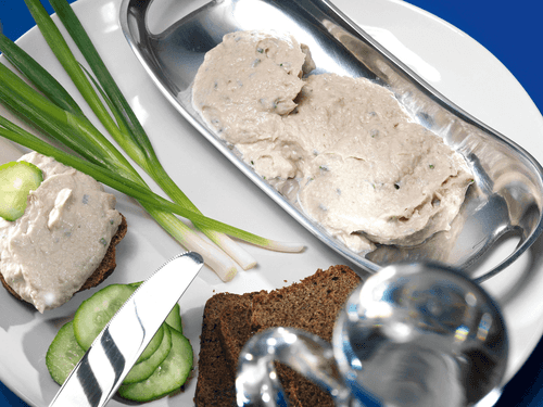 Smoked mackerel pâté is a refined dish of Mediterranean cuisine, combining the rich smoky aroma of fish with the creaminess of cheese and the spiciness of horseradish. Historically, such pastes were popular among sailors and fishermen as smoking allowed for longer preservation of the product. A light lemon note adds freshness to the pâté, while chives complement the flavor with a subtle green hint. It is perfect as a spread on crispy baguette or as a dip for fresh vegetables. The dish can be prepared in just a few minutes but leaves an impression of a complex gastronomic experience. An excellent choice for festive appetizers or a leisurely dinner with a glass of white wine.