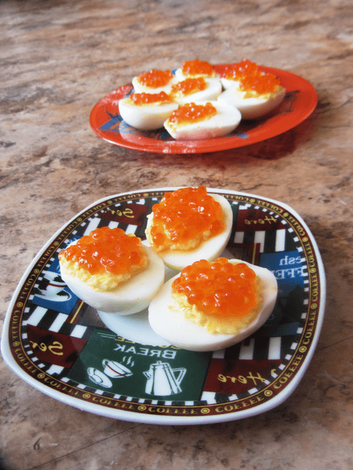Eggs stuffed with cheese and caviar