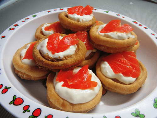 Tartlets with cream cheese and lightly salted fish