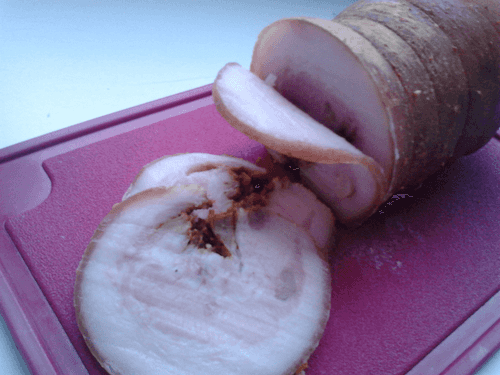 Cheek roll is a dish of Russian cuisine that embodies the traditions of home cooking. The cheek meat, infused with the aromas of spices and garlic, becomes incredibly tender and juicy after prolonged thermal processing. Baking in foil retains all the juices inside, while subsequent cooling makes the texture dense and easy to slice. Historically, pork rolls were popular in rural cuisine where hearty and simple dishes were valued. The taste of this roll is rich, with a slight garlic spiciness and fresh herbal notes. It is perfect as an independent snack and can also be part of a festive table, especially when paired with rye bread and pickled vegetables.