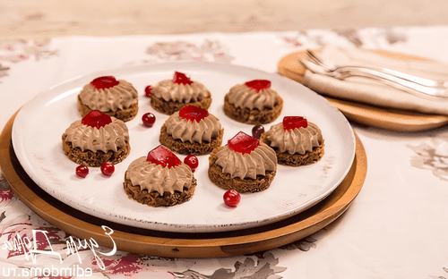 Canapés with chicken liver pâté and cranberry sauce are an elegant and refined treat that combines tenderness and zest in every bite. The liver pâté, made with onions and cream, has a velvety texture and rich flavor enhanced by a hint of nutmeg. The cranberry sauce, with its fresh tartness, harmoniously contrasts with the softness of the pâté, adding a sophisticated complexity to the dish. These canapés are perfect for festive tables, cocktail parties or simply as a special snack delight. The European roots of the recipe reflect the tradition of pairing meat pâtés with fruit sauces, while the exquisite presentation makes it a favorite among gourmets. This dish is not only delicious but also stylish, highlighting subtle flavors and a love for gastronomic experiments.