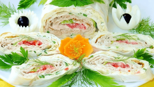 Salmon and tomato roll is a harmony of freshness and rich flavor wrapped in thin Armenian lavash. It combines the tenderness of canned salmon with the slight acidity of tomatoes, the crunchiness of cucumber, and the spiciness of green onion. The origins of such rolls trace back to European cuisine, where the balance of textures and flavors is appreciated. This roll is an ideal solution for a light snack or festive table, easy to cut into portions. After cooling, it gains special juiciness as the ingredients fully unfold their flavors. It is quick to prepare but requires some time to marinate in the fridge. This roll can be taken on the go, for a picnic or served to guests as an appetizing appetizer.