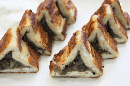 Cottage cheese triangles with mushroom caviar are a refined dish of European cuisine that combines the delicate texture of cottage cheese with the rich flavor of mushroom caviar. This dish is rooted in European gastronomic traditions where mushrooms have always played an important role in creating sophisticated flavor combinations. Crispy on the outside and soft on the inside, the triangles are infused with the aroma of cumin, giving them a light spicy note. They are perfect as an appetizer or a light main course. They can be served with herbs, sour cream, or a yogurt-based sauce, further enhancing their flavor nuances. The simplicity of preparation and richness of taste make them an ideal choice for cozy home lunches and festive gatherings.
