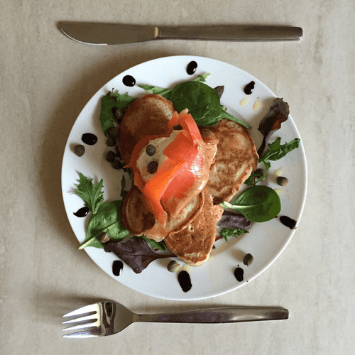 Buckwheat pancakes with salmon