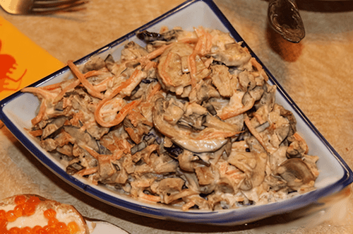 I fill it with plain Activia yogurt. But you can also use mayonnaise, it's a matter of taste! It turns out to be a delicious and, most importantly, unusual salad.
