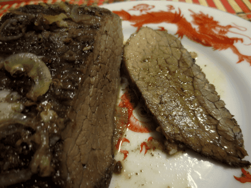 Let the meat cool (in the oven) and serve cold. It is convenient to cut the meat into portions right away and drizzle with the remaining liquid on the tray.