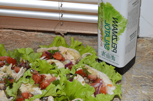 ‘Boats’ filled with chicken is a refined dish of Georgian cuisine that combines the tenderness of chicken meat, the freshness of vegetables, and the spiciness of aromatic herbs. Historically, Georgian cuisine is renowned for its harmony of natural ingredients that create a rich and intense flavor. In this recipe, thin slices of chicken are soaked in a fresh sauce made from tomatoes, red onions, and greens, gaining juiciness and a pleasant tang. Chinese cabbage leaves are used as a base for serving, giving the dish an original appearance and lightness. ‘Boats’ are perfect as an appetizer or light dinner that highlights the culture of hospitality and gastronomic finesse of Georgia.