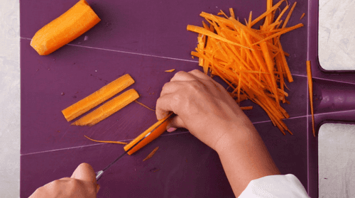 Cut the carrot into thin long strips, sprinkle generously with sugar, and mix well. Leave for 30 minutes to let it release juice.