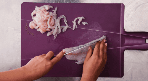 Process the dorado into fillets, then cut into strips no wider than 0.8 cm. Salt and season with 2-3 ml of vinegar, let it sit for 20 minutes under a tightly closed lid.