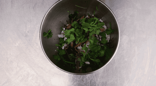 Mix fish, onion, green peas, and carrot in a deep bowl, season with oil, sauces, vinegar, and spices. Add cilantro leaves, salt, and pepper. Let it marinate for 2 hours.