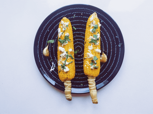 Place pieces of soft cheese on the corn (it starts to melt slowly by itself)