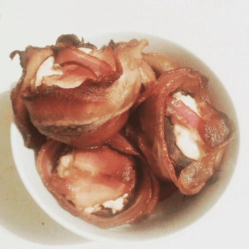 We wrap the caps with bacon.