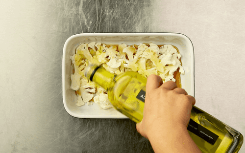 Divide the cauliflower into florets, then slice each one thinly with a vegetable slicer or a very sharp knife.