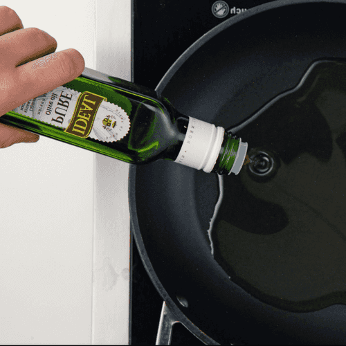 Heat a little olive oil in a saucepan over high heat.