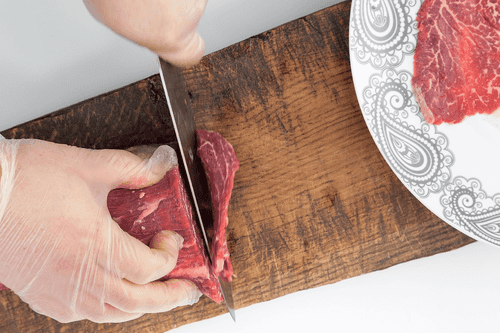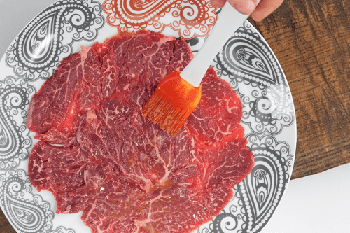 Clean the beef tenderloin from membranes and fat, slightly freeze it to make it easier to cut into thin slices, and cut into pieces 2-3 mm thick.
