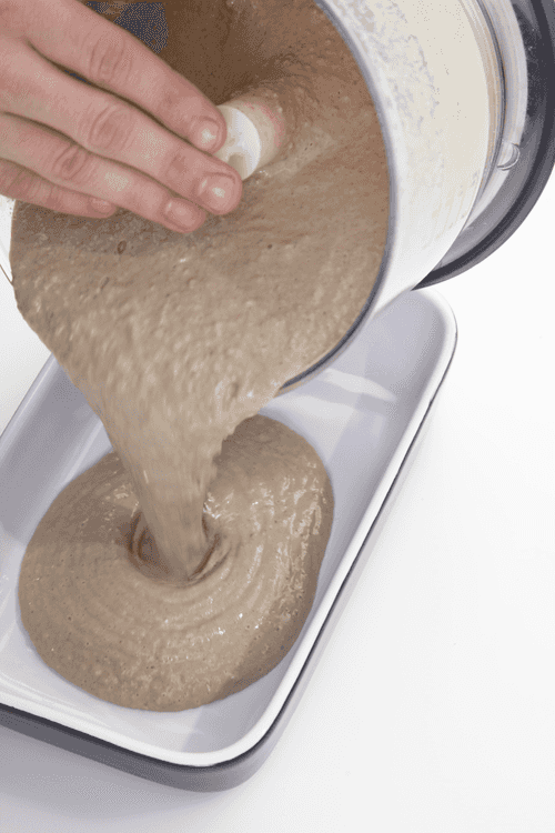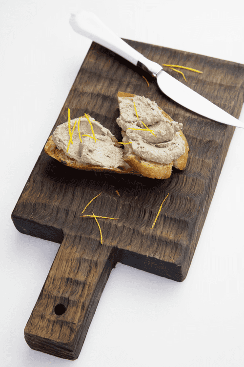 Pour the prepared pâté into a mold, cover it with plastic wrap so that it tightly adheres to the pâté, and send it to the refrigerator to set.
