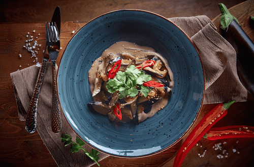 Fried eggplants with coconut milk is a refined dish of European cuisine that combines the tenderness of eggplants with an exotic touch of coconut. At the 'Tarantino' restaurant, it captivates with its richness of flavors and aromas. Large slices of eggplant fried in olive oil acquire an appetizing golden crust, while garlic and chili pepper add spiciness. Coconut milk gives the dish a silky texture and light sweetness, balancing the spicy accents. Fresh cilantro and crunchy sesame seeds are the finishing touches. This dish pairs perfectly with rice or crispy bread, creating a harmony of flavors that transports you to a world of gastronomic delight.