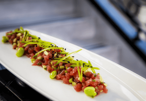 Salmon tartare with lightly salted cucumber