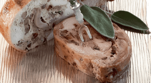 Guinea fowl galantine with liver and mushrooms