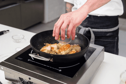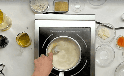 Strain the chicken broth, add milk, butter, salt, and bring to a boil over low heat.
