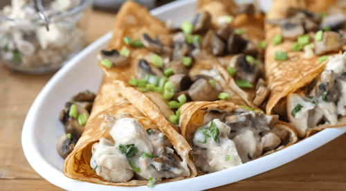 Mushroom filling for pancakes with cheese sauce is a true gastronomic delight born in Russian cuisine. The combination of tender mushrooms sautéed with onions and aromatic cheese sauce gives the dish a rich, creamy flavor with a hint of mushroom. Baked under a golden crust, the pancakes become soft inside and crispy outside. This dish is perfect for a cozy family dinner or a festive table. Mushrooms hold a special place in Russian cuisine; they are added to pies, sauces, and fillings, while the cheese sauce makes this filling especially tender and appetizing. Served hot, these pancakes can be complemented with fresh herbs or sour cream for an even deeper flavor.