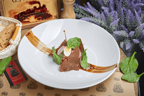 Parisian beef tartare with truffle aioli and rye bread croutons is a true masterpiece of French gastronomy, combining elegance and rich flavors. This recipe reflects the centuries-old tradition of consuming raw meat in European cuisine, paired with delicate sauces and crunchy textures. Finely chopped beef infused with a flavorful dressing featuring Worcestershire sauce, capers, and Tabasco reveals deep flavor complexity. A quail egg adds tenderness while Borodinsky bread chips and radish provide a crunchy contrast. Truffle aioli is an exquisite addition that imparts an earthy, refined note to the dish. This tartare is an ideal choice for gourmets who appreciate flavor balance and skillful texture combinations.