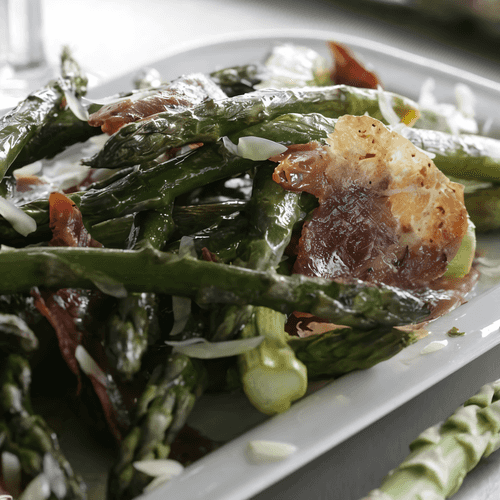 Asparagus with Parma ham is a refined dish of Italian cuisine, where the simplicity of ingredients meets the sophistication of flavor. The asparagus, tender and slightly crunchy, gains richness and depth from thin slices of Parma ham. Baked with aromatic butter and Provençal herbs, it is infused with appetizing notes of melted cream and spices. The final touch is a generous portion of Parmesan and fresh basil that add zest and freshness to the dish. This treat is perfect as an exquisite appetizer or a light side that enhances the main course's flavor.