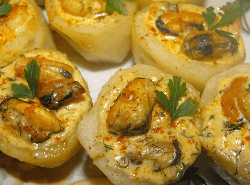 Potato appetizer with mussels